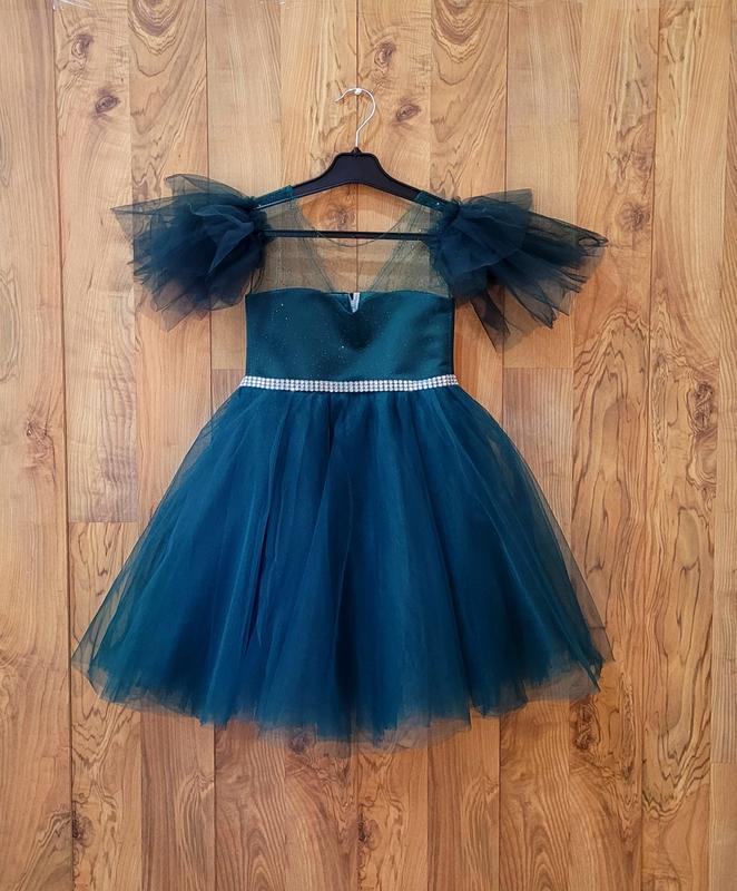 Нарядна сукня ізумрудного кольору для дівчинки на 4-7рочків Сукня йде на зріст 98-110см довжина сукні 70см, напівобхват груді і талії 28см На спинці є молнія та шнурівка