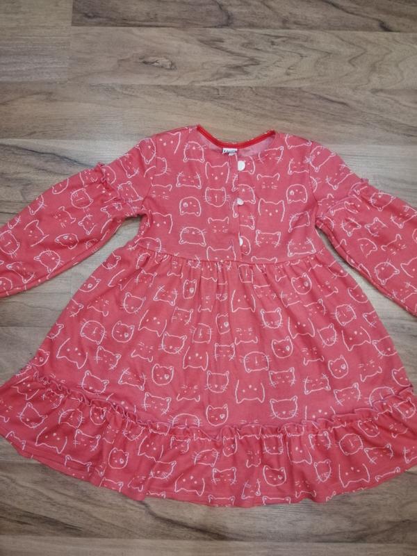 Сукня для дівчинки. Тканина приємна на дотик. Стан нової речі, ми її майже не носили. По бірці - на 5 років, але за рахунок резиночок на рукаві можна раніше і точно носитимете довше. Колір кораловий із білими котиками.