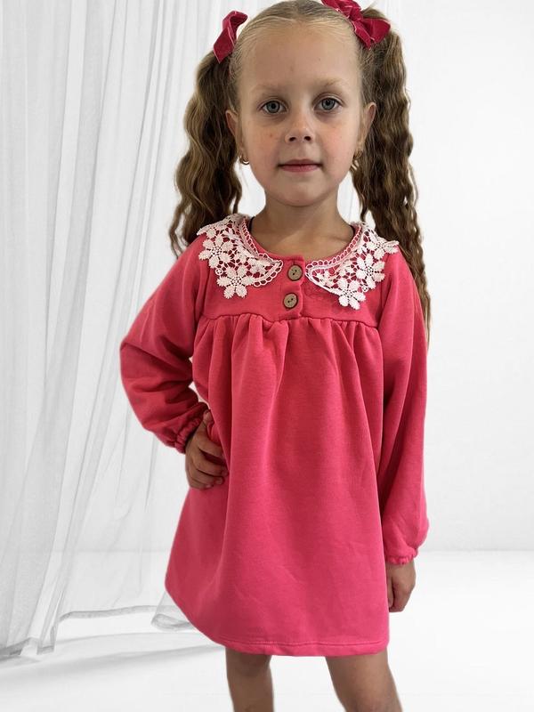 Нарядна сукня. Тканина-тринитка(петельний начіс). Виробник-Туреччина. Якість чудова. Розміри:98,110 (Колір яскравий рожевий) Заміри надаємо