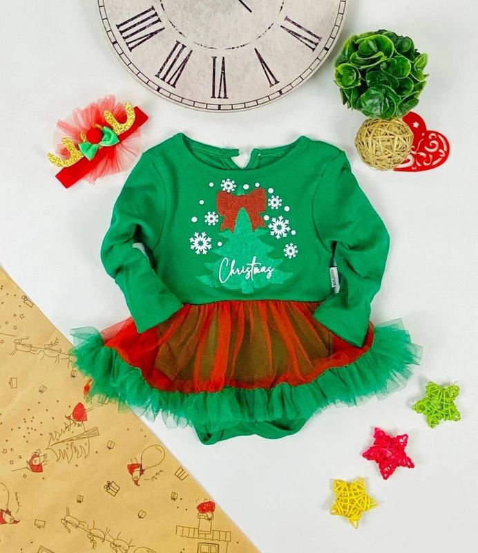 🔥🔥🔥АКЦІЯ МІНУС 50%🤑🤑🤑 ❄️❄️❄️НОВА ЦІНА 195 ГРН☃️☃️☃️ Неймовірна новинка на прийдешні новорічні свята - наймиліший комплект для Ваших маленьких принцес. Комплект складається з бодіка (застібки - закриті кнопочки між ніжок) з пришитою яскравою спідницею з фатіну та аксесуар на голову. Бодік прикрашає оригінальний малюнок у новорічній тематиці. Полотно вироби - високоякісний, натуральний і гіпоалергенний матеріал Виробництво: Туреччина Щільна двонитка 100% бавовна Ціна 390грн Розміри 9 місяців-1шт 18 місяців-1шт 24 місяців-1шт
