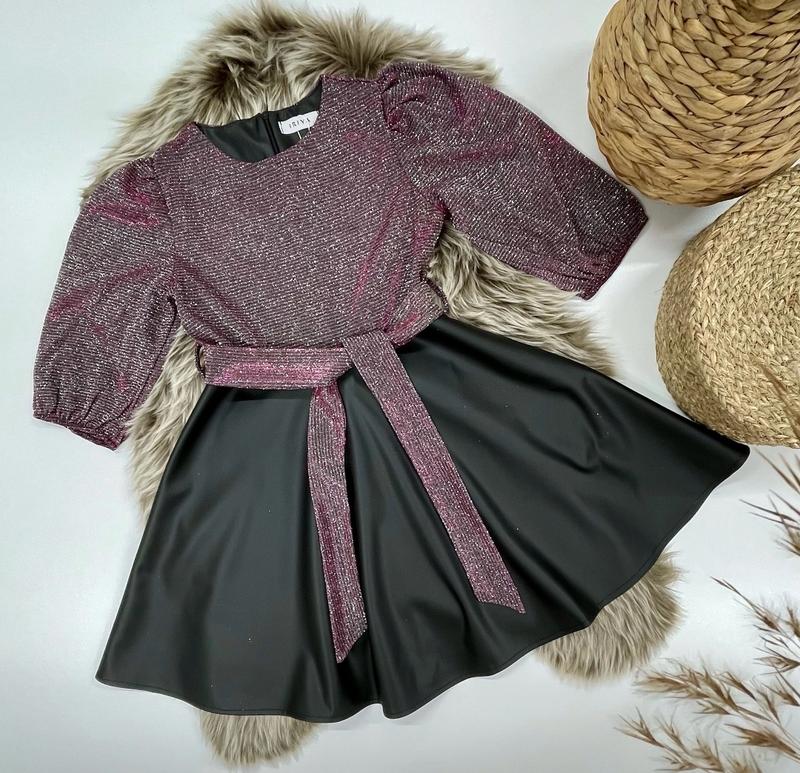 арт 3976 Святкова сукня еко-шкіра та трикотаж з люрексом рукав 3/4 під поясок по спинці глибока блискавка РЕКОМЕНДУЮ! зріст/довжина/пог/рукав від плеча похибка+-2см 134/70/36/36-3шт