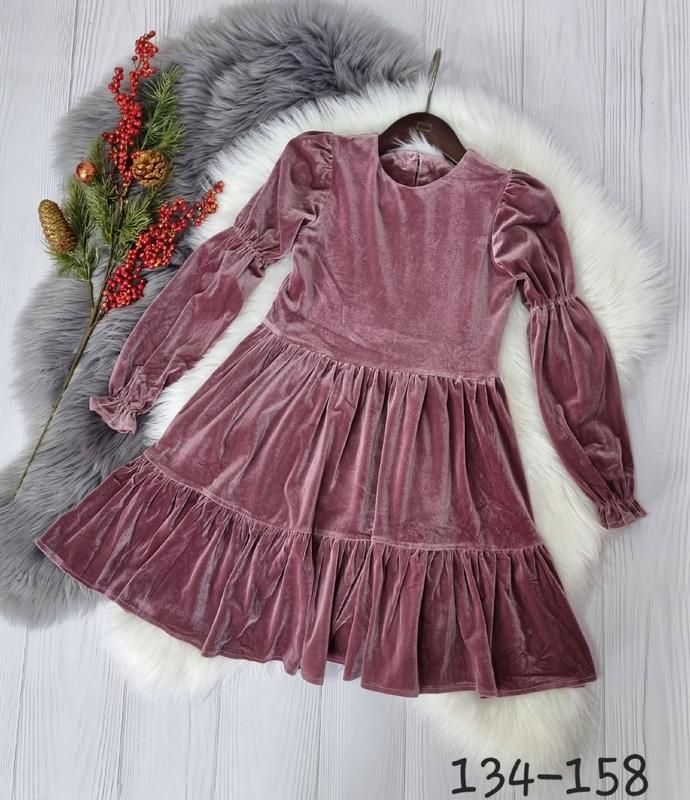 Яскрава і ніжна святкова сукня тканина велюр мерехтіння в талії резиночка спинка застібається на гудзик Гарна якість! 134(1 шт)-довжина 74,пог 33,рукав 50 140(1 шт)-довжина 77,пог 34,рукав 52 146(1 шт)-довжина 79,пог 35,рукав 55 152(1 шт)-довжина 81,пог 37,рукав 58 158(1 шт)-довжина 83,пог 39,рукав 61 +-2 см