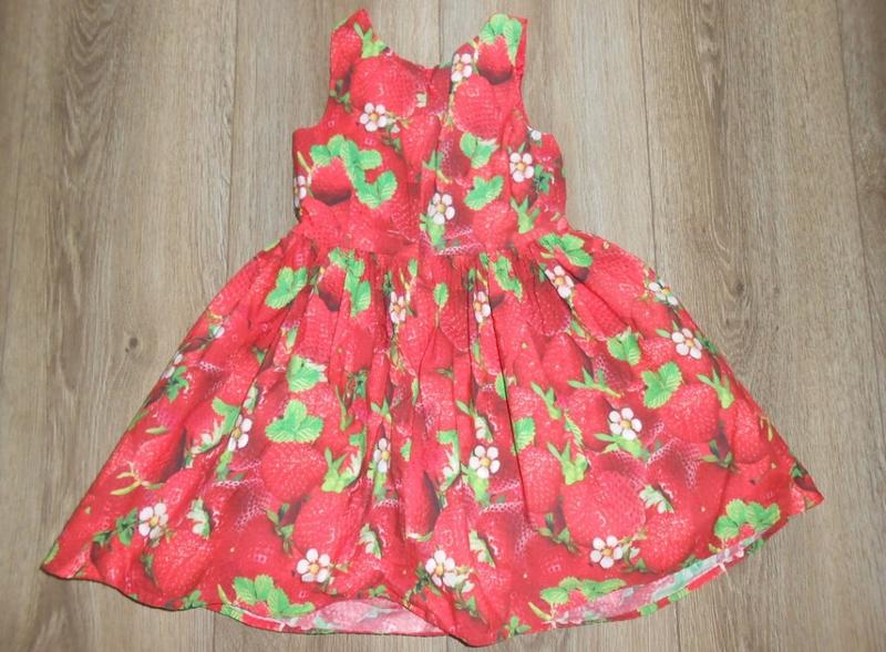 Платье в клубничках на 3 р.,стан отличное,плочее 3 см, пог 28 см,пояс 27 см, длина 24 см.