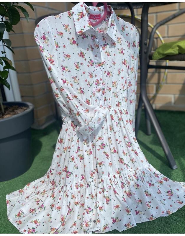 Така ніжна та красива сукня . Пояс резинка ,рукав манжета на кнопках, від воротнічка до поясу також кнопки . Лишилася в розмірах 140 , 146
