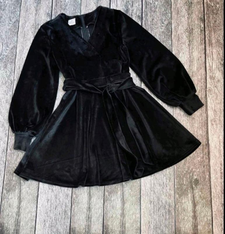 Стильна сукня для модниць По спинці до пояса застібається на блискавку. Спереду на запах. Пояск в комплекті. Тканина- королівський велюр, м'який та ніжний. Заміри: 158 довжина - 83см, рукав від плеча - 58см, напівобхват грудей - 44см 164 довжина - 87см, рукав ід плеча - 63см, напівобхват грудей - 45см Мс