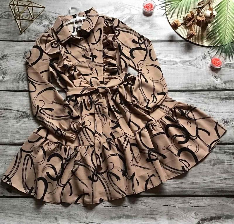 Сукня для дівчинки До пояса застібається на гудзики. Поясок в комплекті. Тканина - американський креп. Заміри: 134 довжина - 69см, напівобхват грудей - 37см, рукав від плеча - 45см. 146 довжина - 77см, напівобхват грудей - 39см, рукав від плеча - 50см. 152 довжина - 80см, напівобхват грудей - 41см, рукав від плеча - 52см.