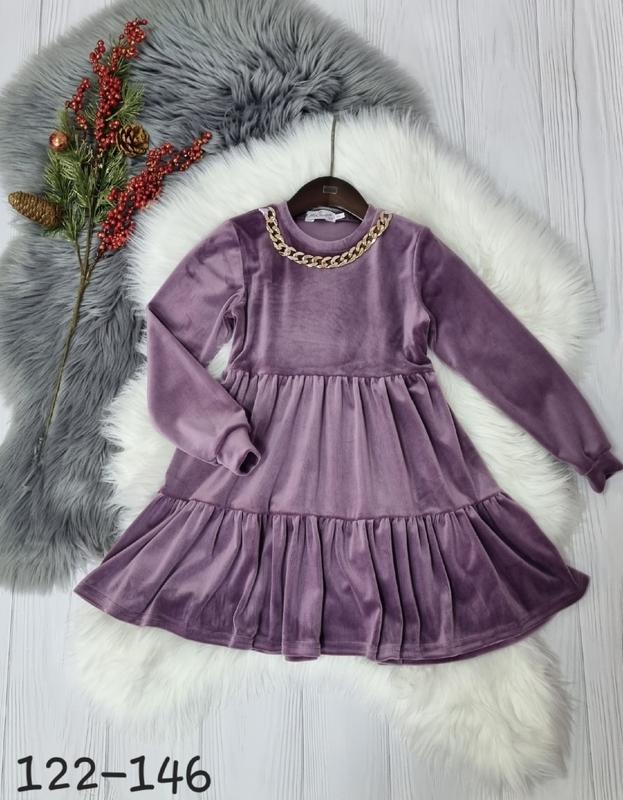 Чудове платтячко для дівчинки королівський велюр приємне до тіла прикрашено ланцюжком якість люкс 146(1 шт) - пог 36 см, довжина 75 см, рукав 52 см +-2 см