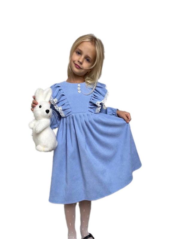 Неймовірно гарна та стильна сукня для дівчинки. Виготовлена із приємного на дотик, якісного матеріалу. Тканина мікро вільвєт. Сукня блакитного кольору та має вільний сілует. Якість відмінна. Виробник Україна