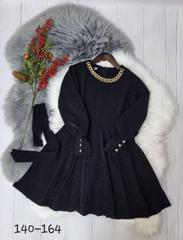 💞Стильна сукня для дівчинки тканина люрекс на трикотажі з середини приємна до тіла(не колеться) горловинка прикрашена ланцюжком поясок в комплекті гарно тягнеться РЕКОМЕНДУЮ! 140(1 шт)-довжина 75,пог 36,рукав 49 146(1 шт)-довжина 78,пог 37,рукав 51 152(1 шт)-довжина 81,пог 39,рукав 53 158(1 шт)-довжина 85,пог 40,рукав 54 164(1 шт)-довжина 88,пог 42,рукав 57 +-2 см Ціна 830 грн
