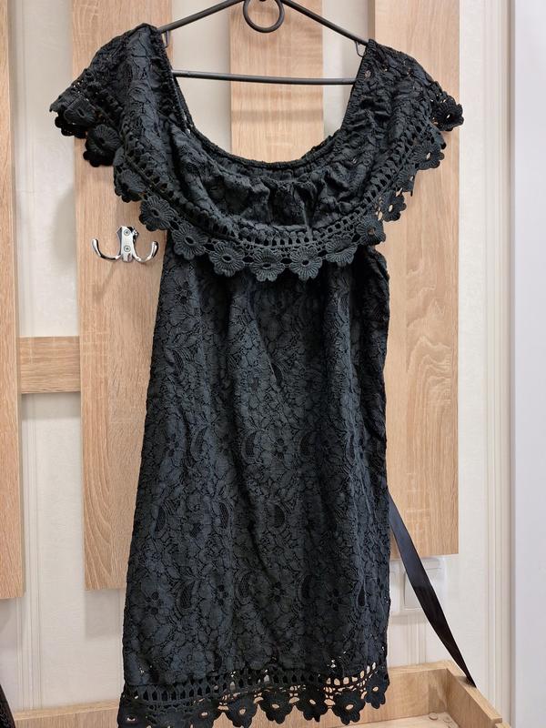 Чудова сукня чорного кольору. Розмір: s/m Довжина: 67 см З підкладкою, не просвічується. Опускається на плечі.