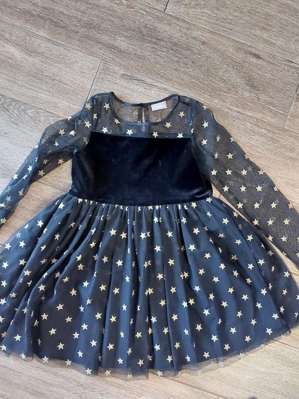 Очень красивое платье черногр цвета с золотыми звездочками.На 10 лет.Моя дочь носила его в 7 лет