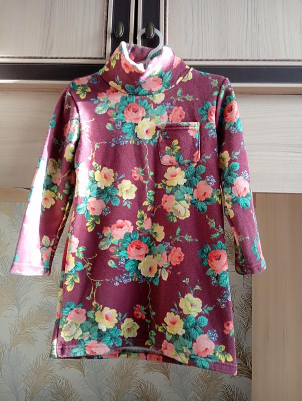 Сукня для дівчинки бордового кольору в квітковий принт. Має утеплення, фліс зі зворотного боку. Чудовий варіант на холодну пору)