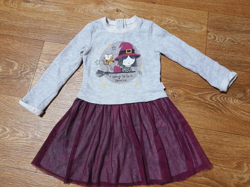 Сукня з довгим рукавом. Юбка зверху прикрашена фатином.