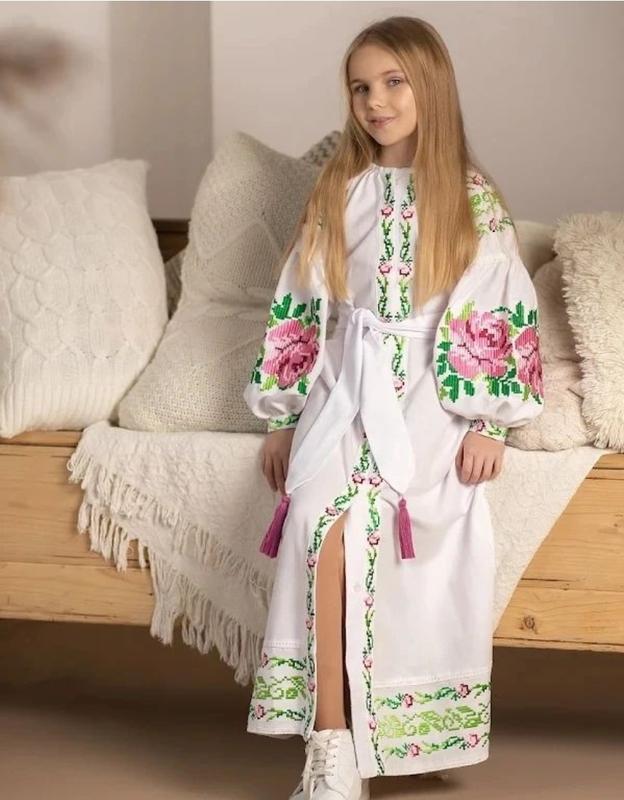 вышитое платье с розами тканина- домоткане полотно рост 128 134 140 146 мод.ле220