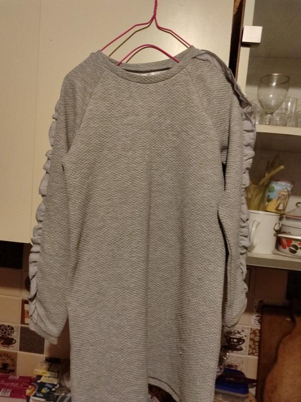 Сукня трикотажна. На дівчинку 10 років. Сірого кольору, тягнеться.