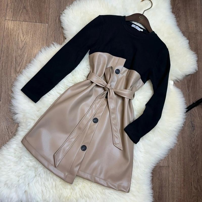 Неймовірно красива сукня в поєднанні екошкіри та трикотажу, в комплекті з поясочком, який чудово підкрелює фігуру. 140 дов-71 см рук-45 см пог-37 146 дов-72 см рук-46 см пог-38 152 дов-76 см рук-51 см пог-40 158 дов-79 см рук-53 см пог-42 164 дов-82 см рук-55 см пог-44 см +- 2 см