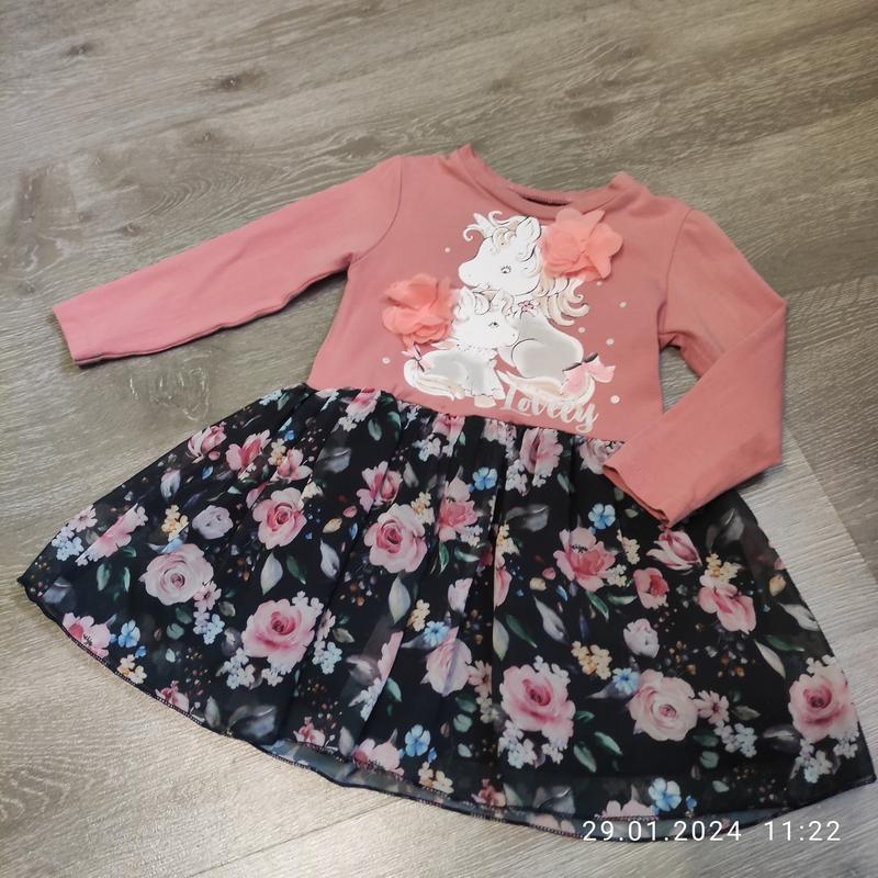 Дуже гарна та мила сукня для любителів єдинорожки. В ідеальному стані. є дві ледь помітні плямки, мабуть від слайму, при носці майже не видно ( останні два фото) розмір 92 але орієнтуйтеся по замірах на фото ціна 250грн