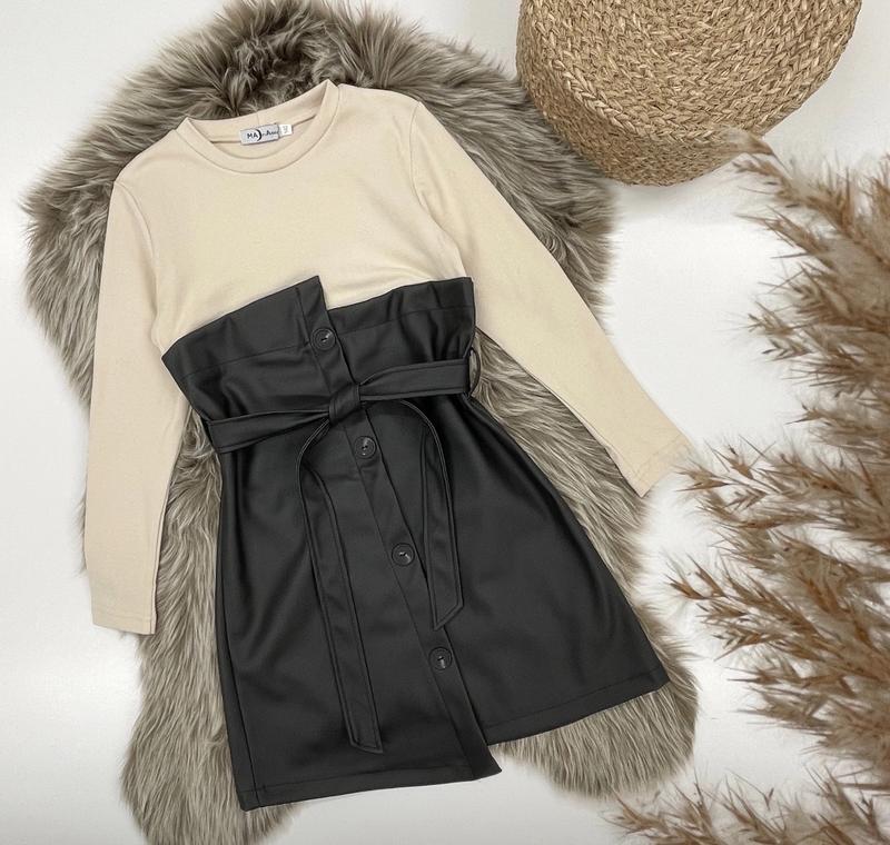 арт 4313 Крутое стильное платье Под поясок Ткань термо трикотаж + экокожа на замше Украшено декоративными пуговицами Приятное к телу Рост/длина/пог/рукав от горловины Похибка+-2см 164/85/44/66-3шт