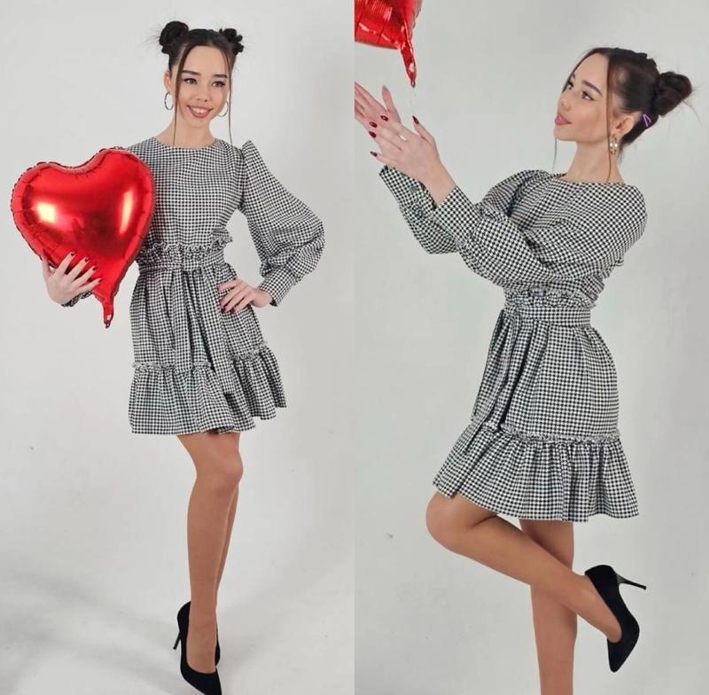 арт 4293 Весняна сукня тканина костюмкаʼʼ гусячя лапкаʼʼ примна на дотик по спинке и на манжетах кнопки рукав фонариком с пояском Рост/длина/пог/рукав от горловины похибка+-2см 164-170/83/41/64-2шт Тан