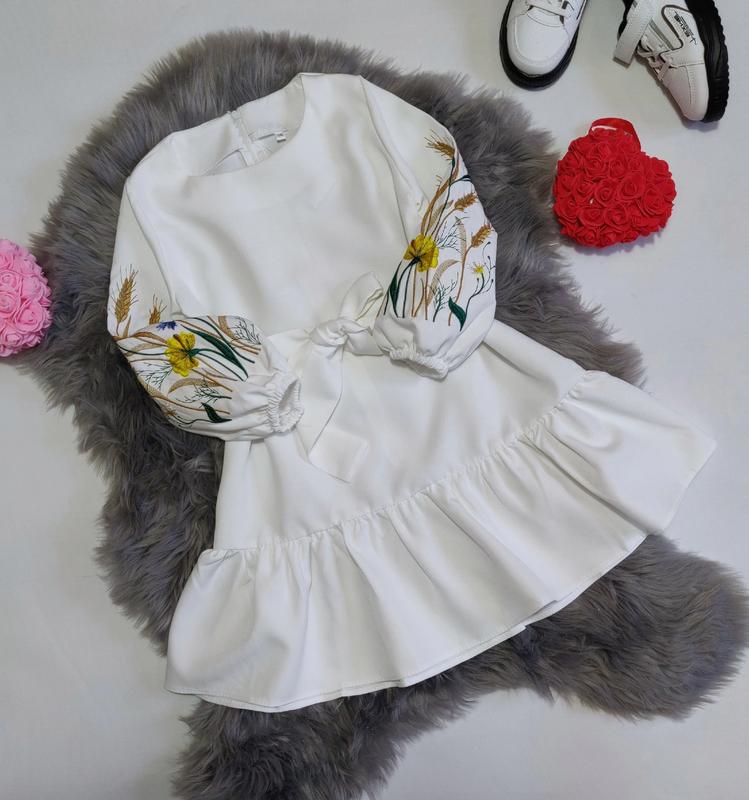 ток Неймовірно красива та ніжна сукня з вишивкою колосків,по спинці замочок, поясок в комлекті! тканна костюмка барбі заміри довжина/пог/довжина рукава 152-75/43/49 164-80/46/54