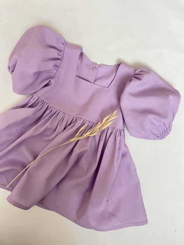 Ніжна льняна сукня з рукавчиком-фонарик на резиночці. Спинка на кнопочках для зручності вдягати. До замовлення доступні розміри 56-128. Ціна залежить від розміру. 56,62,68- 610грн. 74,80,86 - 660 грн. 92,98,104 - 710 грн. 110,116 - 770 грн. 122,128 - 820 грн.