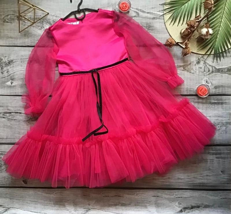 Сукня для принцес! Ткань - королевский атлас, евросетка. По спинке застегивается на молнию. Замеры: 122 длина - 71см, полуобхват груди - 34см, рукав от плеча - 43см. 128 длина - 74см, полуобхват груди - 34см, рукав от плеча - 45см.