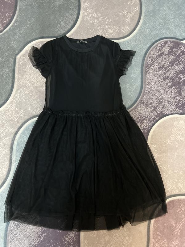 Платье с подкладкой,черный фатин с верха под низом натуральная ткань, состояние одета один раз.длина 88 под руками 36