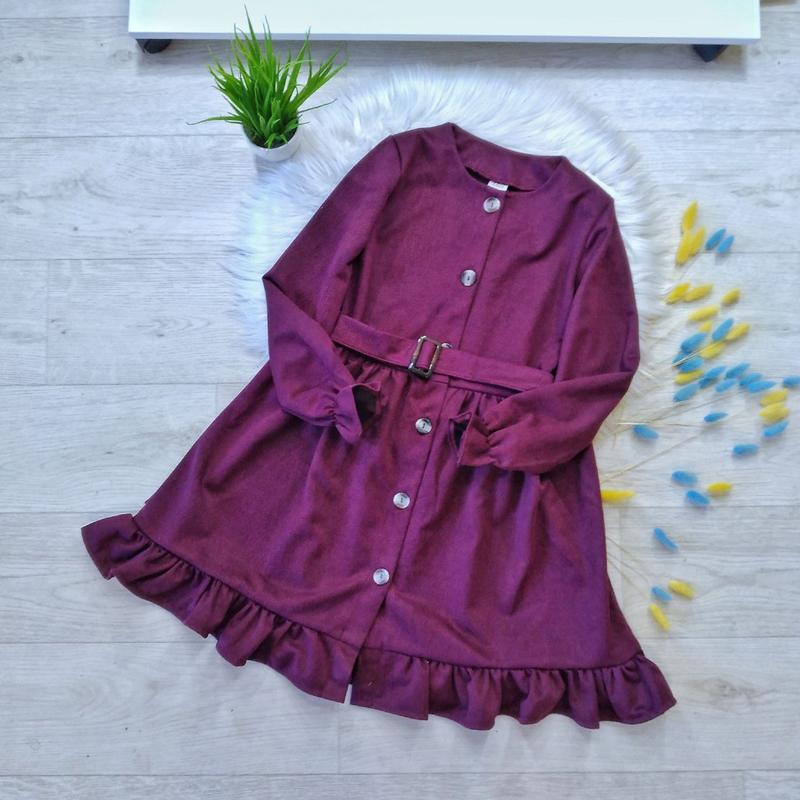 Ціна 650 грн Дуже гарна сукня ідеально підійде як в школу так і на свято ✨✨✨🤗🤗🤗🤗🤗🤗 Комфортна , висока якість , тканина дуже приємна до тіла 🤩🤩🤩🤩По всій довжині є діючі гудзики , рукавчик та низ сукні зібрано , пояс іде в комплекті 😍😍😍😍😍 Тканина: замш-діагональ ✨ Виробник: Україна 🇺🇦 р.140-1шт р.152-1шт ЗАМІРИ +/-1-2см!!! ▪р.140 довжина 76 см/рукав від горловини 57см /ПОГ 36см ▪р.152 довжина 81 см/рукав від горловини 61см /ПОГ 38см