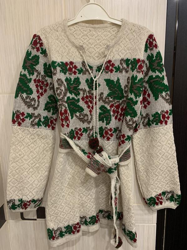 Тоненька в‘язка, легенька, гарно виглядає, є пояс. Підходить десьприблизно на розмір 116