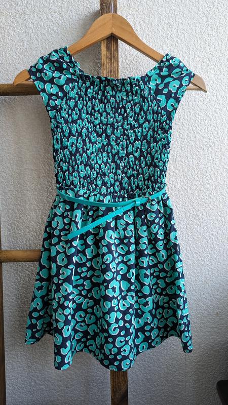 Легесенька сукня, топ - резинка, має спущене плече. Бірка з розміром зрізана та буде на 116-122см. Стан ідеальний.