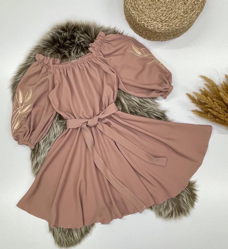 Арт 4457 Платье "Эмилли" в комплекте с поясом и трендовыми колостями вышитыми по рукавам Настоящая вышивка Ткань-креп диагональ (Барби) Супер качество рост/длина от плеча/пог/рукав полная длина похибка+-2см 158-164/86/44/45-1шт