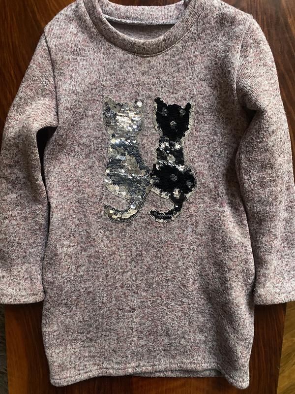 Гарне затишне плаття з милими котиками, що змінюють колір. Довжина 57 см, по груді 30 см, рукав 42. Стан чудовий! Утеплене, з карманчикамт!