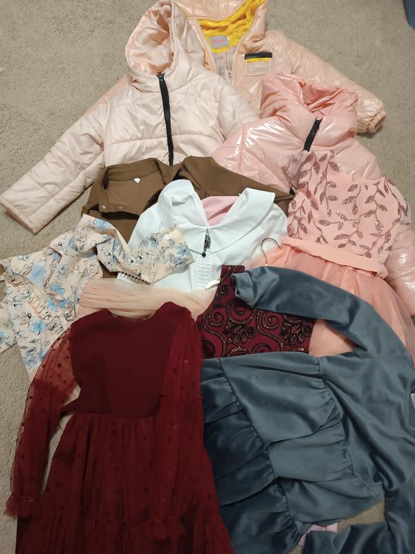 2 куртки весняні 5-6 років 110- 122р. 1 куртка Демі 5 років 116 р. 1 блузка 6 років 7 суконь від 110- 128р. 1 весняні чобітки 30 р. Додаткові фото та заміри за запитом.
