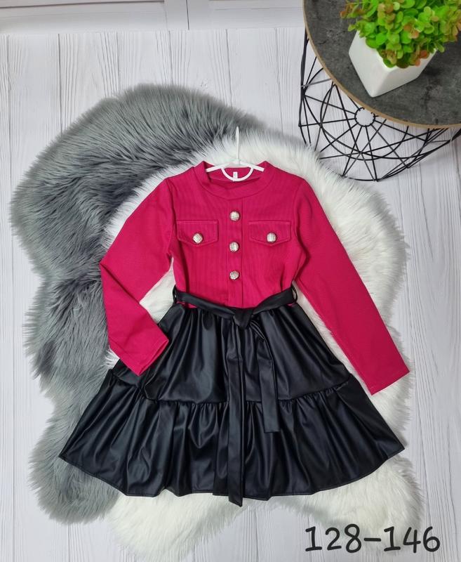 ландиш 💞Яскрава сукня для юної модниці тканина трикотаж рубчик низ-екошкіра поясок в комплекті Рекомендую! 128(1 шт)-довжина 66,пог 34,рукав від плеча 49 146(1 шт)-довжина 74,пог 36,рукав від плеча 56 +-2 см