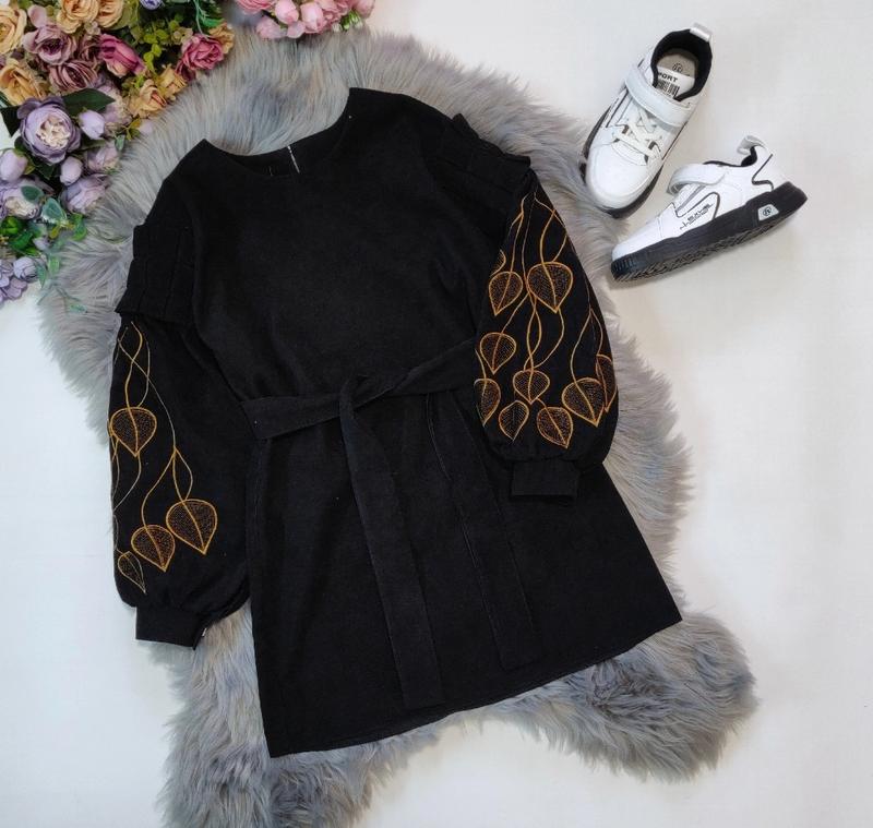 Весна пора краси, ловіть ще одну новинку сезону💋💋💋 Шикарна сукня з вишивкою на рукавах тканина вельвет,дуже ніжна і мякенька на спинці та манжетах застібається на гудзик,пояс в комплекті заміри:довжина/рукав від горловини/пог 134-67/56/39 140-70/60/40 146-73/62/41 152-77/66/42 158-80/69/43 +-2см