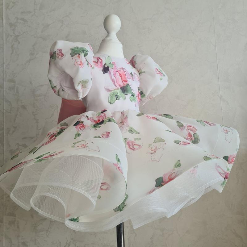 Индивидуальный,качественный пошив. Платье очень пышное за счёт многослойности и пришитого по низу юбок хорса. при этом очень лёгкое! Возможен пошив в любом размере и возможен другой принт и расцветка. Перед заказом напишите и мы обговорим сроки и изменения.