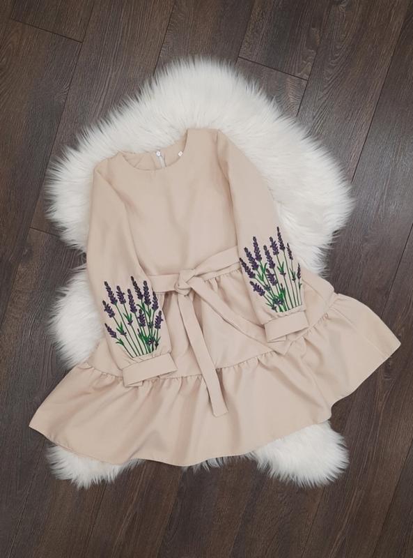 Неймовірно красива та ніжна сукня з вишивкою лаванда, ,по спинці замочок, поясок в комлекті ! тканна костюмка барбі ЗАМІРИ : 146 довжина-76 см рук-52 см пог-37 см