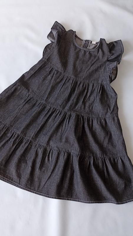 Пропоную сучасну джинсову ярусну сукню Чорна,тонкий джинс Стан нової речі Розмір вказаний 150,за рахунок фасону може бути з росту 140 см Довжина 77 см Плечі 28 см Напівширина під руками 37 см Знизу вільно Тканина літня,не товста 95% коттон,5% поліестер