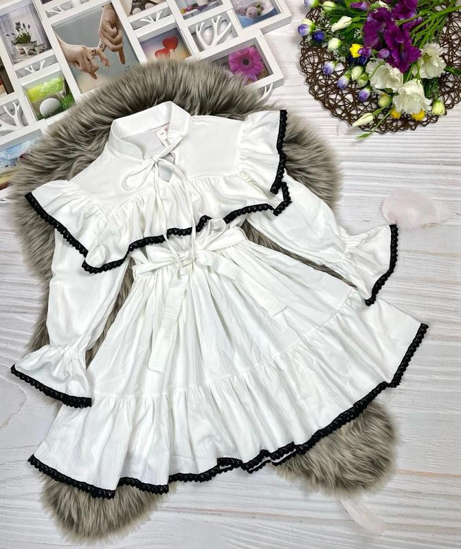 Стильное красивое платье для красавиц 💗 Ткань креп-жатка высокого качества + кружево, в поясе резинка, завязывается под поясок Замеры: длина/пог/рукав от плеча 128 - 69/30/46