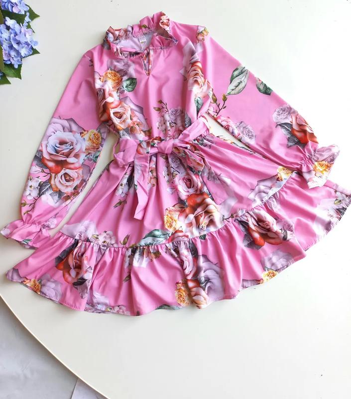 Дуже гарне весняне плаття Тканина софт, легка приємна до тіла. В поясі прошита резинка + поясок 134-довжина 69,рукав 46,шир 36