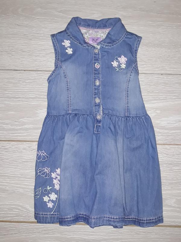 Тип одягу: Плаття Фірмовий сарафан для дівчинки на 1.5-2,0 року. Попереду застібається на гудзики. Склад 100% бавовна. Стан дуже хороший Заміри: довжина по спинці 47 см, довжина спідниці 26,5 см, талія 28,5 см, ширина між пахвами 27,5 см Виробник: F&F Розмір: 2 / 92 Колір: Блакитний