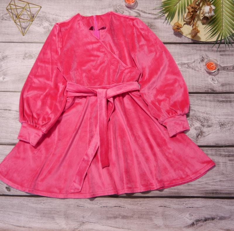 Стильное платье для модниц По спинке к поясу застегивается на молнию. Спереду на запах. Пояс в комплекте. Ткань королевский велюр, мягкий и нежный. Цвет-МАЛИНА. Замеры: 140 длина - 69см, рукав от плеча - 52см, полуобхват груди - 38см 146 длина - 75см, рукав от плеча - 54см, полуобхват груди - 39см 164 длина - 87см, рукав ид плеча - 63см, полуобхват груди - 45см Мс