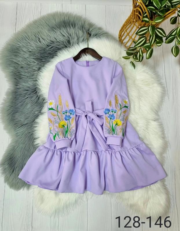 Неймовірно гарна та ніжна сукня На рукавах вишивка тканина костюмка барбі по спинці застібається на змійку, поясок в коплекті 128(1 шт)-довжина 69,рукав 45,пог 33 134(1 шт)-довжина 71,рукав 48,пог 34 140(1 шт)-довжина 74,рукав 50,пог 36 146(1 шт)-довжина 76,рукав 52,пог 37 +-2 см