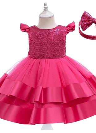 Невероятно красивое нарядное платье для ваших принцесс 🔥 В комплекте с повязкой на голову Украшена пайетками, которые очень красиво сверкают 😍🛑😍 Сзади имеет большой бант украшен пайетками Идеально подойдет для праздников, фотосессий, ранков и дней рождения ❣️🔥🥰 Ткань -атлас +многослойный фатин💥 Подкладка -хлопок Сзади застегивается на молнию. 80 - длина 46 см, пог 23 см (3 шт) 90 - длина 51 см, пог 25 см (4 шт) 100 - длина 55 см, пог 26 см (2 шт) 130 - длина 71 см, пог 30 см (1 шт) а