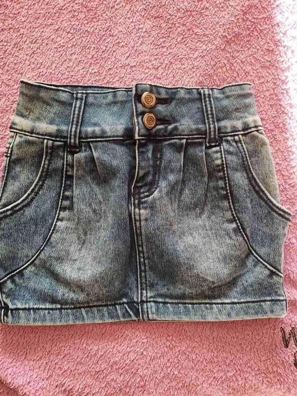 Виробник: Інший виробник Тип одягу: Спідниці Продам дуже красиву джинсову спідницю з кишеньками. Прикрашена камінцями на кишенях і внизу спереду теж камінчики. Джинс дуже м'який і приємний на дотик. Джинс тягнеться. Застібається на блискавку та на ґудзики, у поясі є затяжка. Стан чудовий. Заміри: пояс 27 см, стегна 32-33 см, довжина 26 см. Дивіться інші свої оголошення. Багато дитячих речей. Під час купівлі кількох речей знижка 10% Відправлю укр. поштою або НП.