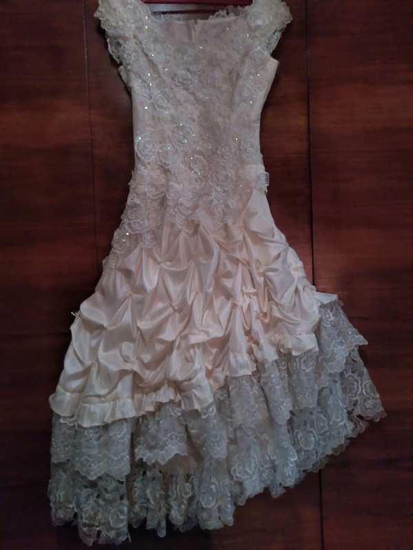 Виробник: Інший виробник Тип одягу: Плаття Розмір одягу: Інший розмір Сукня святкова, нова, кремова, р.42. Тканина — шовк, млосно. Довжина від талії 85см., довжина від плеча 135см.