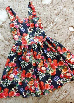 Платье в цветочный принт размер XS длина 82 см талия 32 см