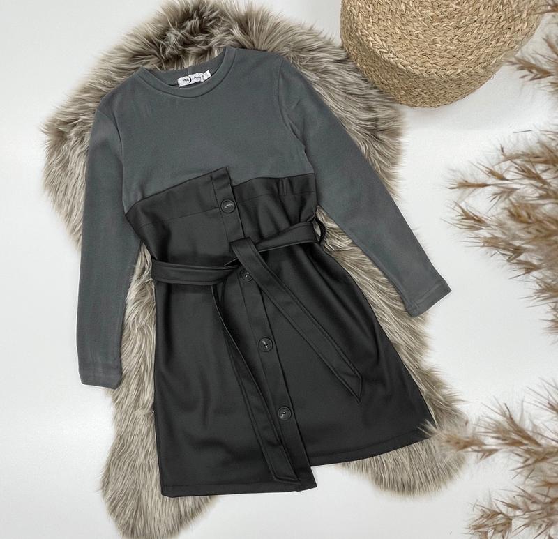 арт 4253 Круте стильне платтячко Під поясок Тканина термо трикотаж + екошкіра на замші Оздоблено декоративними ґудзиками Приємне до тіла Супер якість! Зріст/довжина/пог/рукав від горловини Похибка+-2см 140/71/37/54-2шт 146/74/39/56-2шт 164/85/44/66-2шт