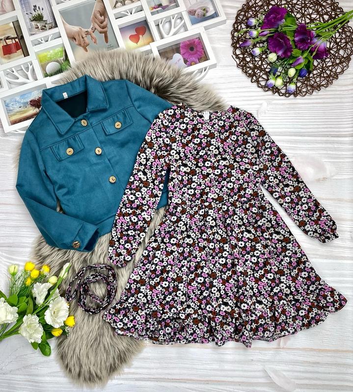 Стильный комплект для красавиц 💗 пиджак + платье с пояском Пиджак ткань замш, платье - софт завязывается под пояс Замеры: длина пиджак/пог/рукав от плеча. длиннее платье/пог/рукав от плеча 116 - 36/33/40. 58/28/37 122 - 38/36/44. 62/30/40 128 - 42/35/46. 64/32/44 134 - 43/39/48. 67/33/46