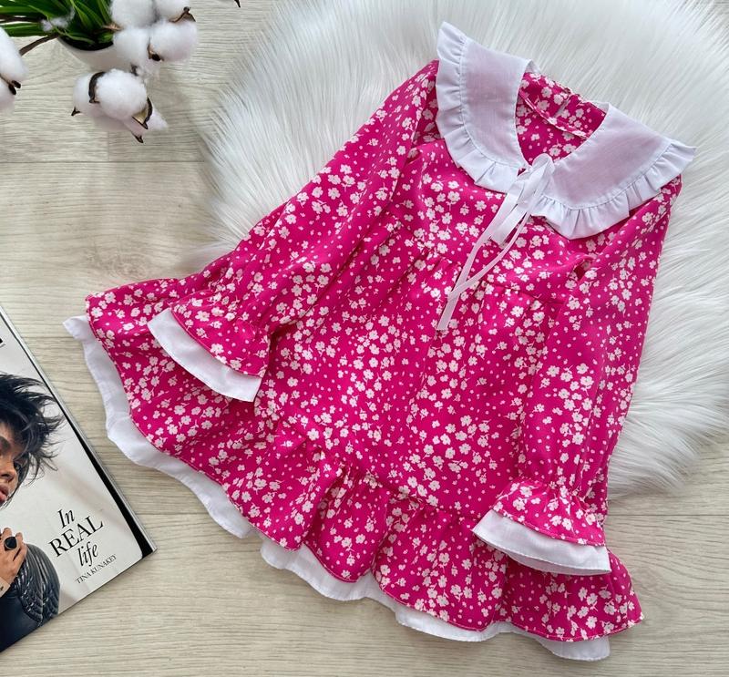 Трендова сукня для маленьких красунь 😍😍😍 Квіткова та ніжна 🩷🩷🩷 Любов з першого погляду 🥰 Спідниця з бавовняною підкладкою😍В рукавичках резиночка👌🏻 Воротнічок зʼємний😉 Позаду сукня застібається на ґудзик🌸 В талії поясок🩷 Тканина: софт (підкладка бавовна) 🥰 Виробник: Україна 🇺🇦 ЗАМІРИ +/-1-2см!!! ▪р.92- довжина 50см/ рукав від плечового шва 34см / ПОГ 28см